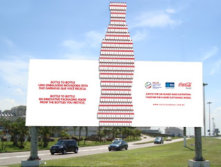 A DPZ criou para Coca-Cola um outdoor formado por garrafas de 2,5L de bottle-to-bottle – embalagem PET produzida a partir de garrafas PET pós-consumo recicladas. Essa será as boas-vindas que a empresa deseja aos convidados internacionais da Rio+20 terão a marca da reciclagem